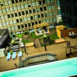 A rooftop heated pool offers a retreat above the city, with sweeping views of downtown St. Louis and the skyline below. Designed for both relaxation and social gathering, the space delivers an elevated experience from morning laps, lunch breaks, or evening downtime.